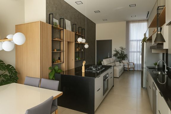 ✅ Cozinha integrada ao espaço gourmet